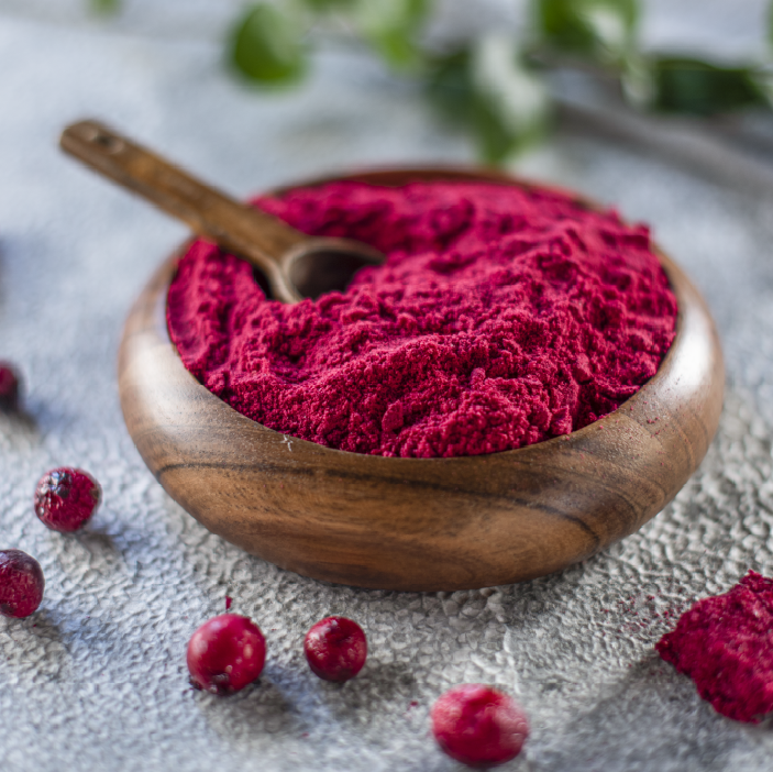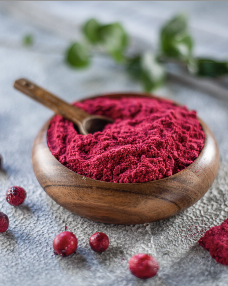 蔓越莓冻干粉采用冻干技术从健康、成熟的蔓越莓中提取。