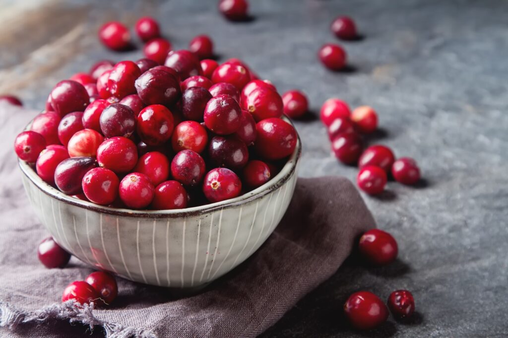 研究发现,蔓越莓含有人体日常所需的99%的矿物质铁、锌、磷和95%的维生素C、E,还因含有花青素而有助于保护视力。保护视网膜免受自由基损伤和感染。